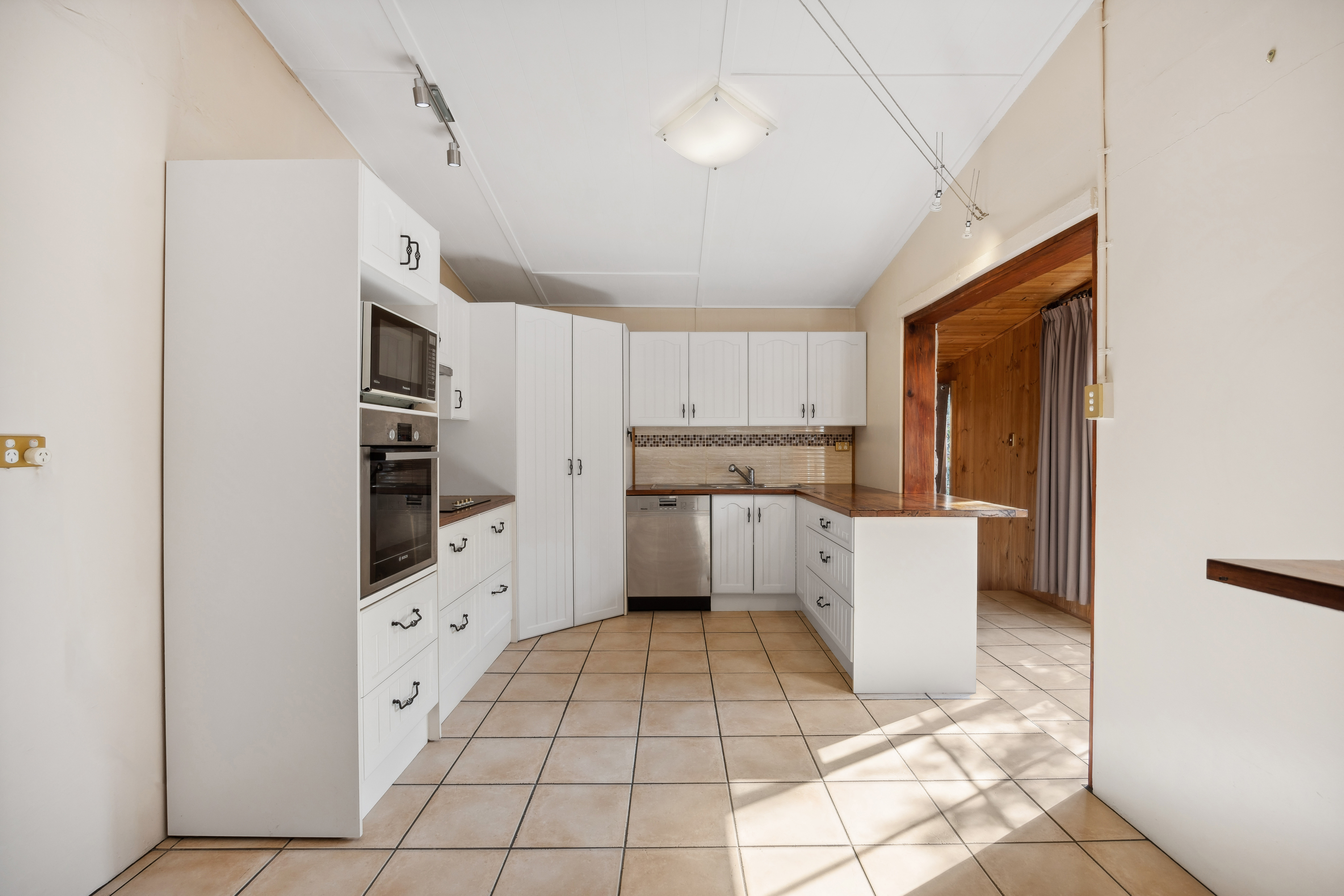 • Large country kitchen with electric appliances and two pantry cupboards.