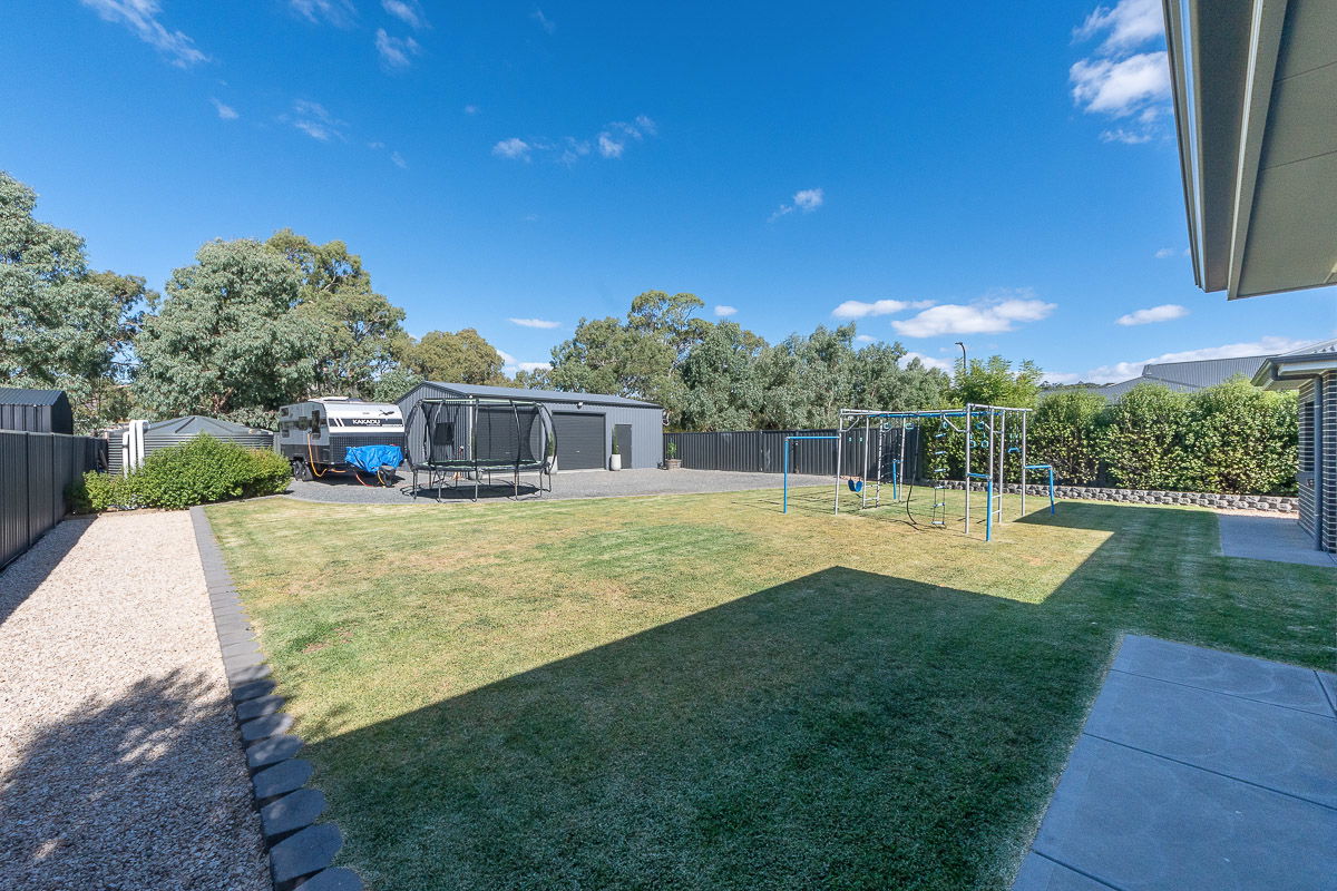 Outdoors, the expansive yard has been thoughtfully designed for easy maintenance and features a fully automated irrigation system that can be operated remotely. At the rear of the spacious 1118sqm (approx.) allotment the 10m x 8m (approx.) shed provides two roller doors, concrete floor, light and power plus extra workshop area. Entry to the rear yard via gates maintains ideal access for larger vehicles or trailers.
